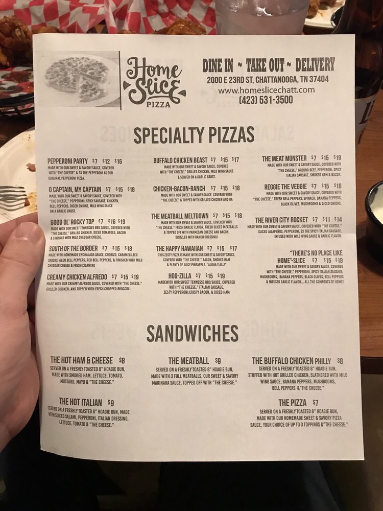 Chattanooga Pizza Co, located in Chattanooga, TN, offers a diverse menu featuring pizza, chicken wings, and breakfast & brunch options. Their inclusive approach includes vegan and vegetarian options, wheelchair accessibility, and accommodating various dietary needs, such as gluten-free and food allergies. The restaurant provides a range of amenities, including delivery, takeout, reservations, and catering services. Customers rave about the flavorful dishes, with highlights like fried pickles, deep-fried Oreos, and perfectly sauced wings. The unique pizza creations, like the thin-crust deep-dish with extended crispy cheese edges, showcase their culinary creativity. The welcoming atmosphere and attentive staff make dining here a delightful experience. Whether you're a pizza lover, health-conscious diner, or looking for a casual dining spot with a diverse menu, Chattanooga Pizza Co has something for everyone.